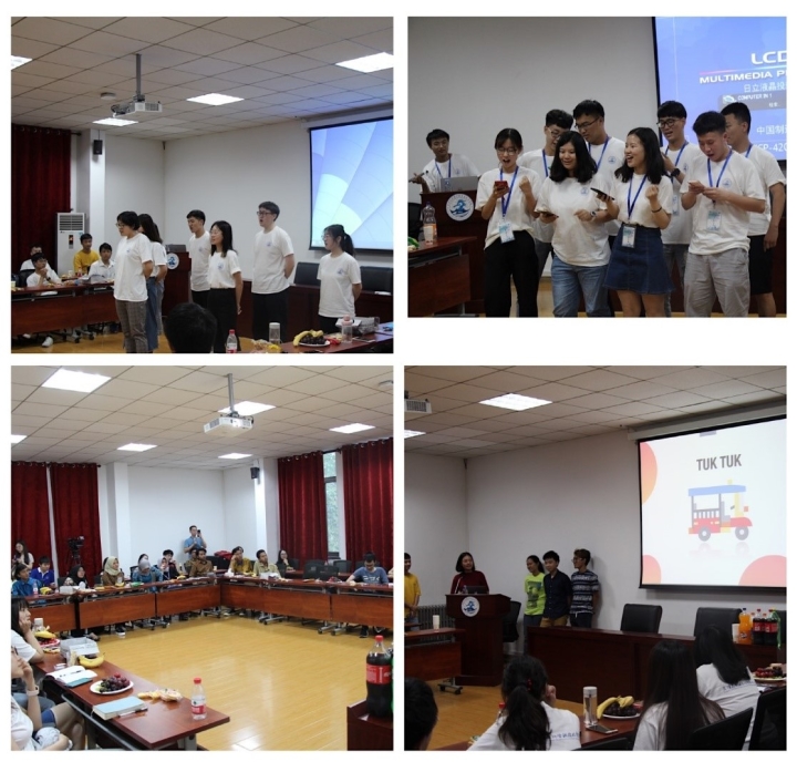 7月8日晚上,营员与东盟留学生的联谊活动把夏令营活动推向了高潮。营员初识第一天就表现出团结协作的精神,表演歌曲、舞蹈等节目,展现出夏令营营员多才多艺的一面。