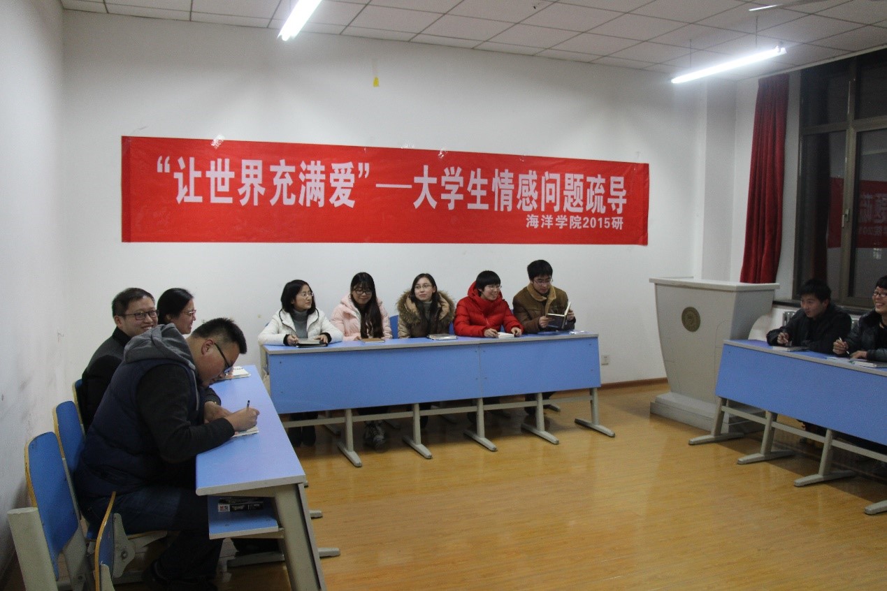 (本站讯 通讯员:蔡海 刘泽羲)面对各种各样的情感问题,我该怎么做?你会怎么做?2015年12月16日晚,国产自拍 研究生全体成员汇聚第8教学楼320会议室以“沟通心灵,共同成长”为主题开展情感问题交流讨论会,交流生活中遇到的问题,通过沟通,缓解心中情感的疑惑,本次活动系“让世界充满爱”心理素质立项系列活动之二“己行”。