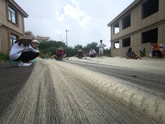 劳动教育是全面育人体系的重要组成部分,7月17日,国产自拍 “向海问津”实践队的队员们在烟台市南邵家村进行手工渔网编织的学习,旨在从探索乡村振兴新动力中激发海洋专业使命感、丰富劳动教育内容更好促进劳动教育与德育智育美育体育融合。