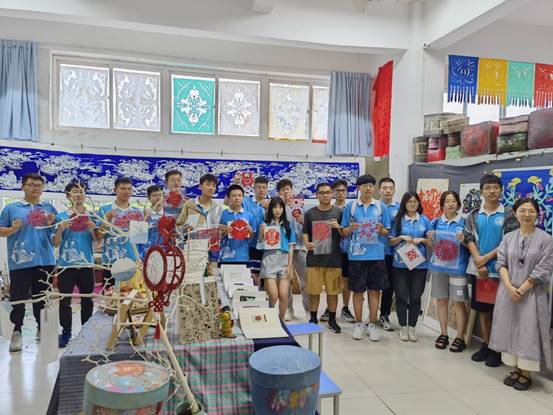 图为实践队员携剪纸作品与老师合照。中国青年网通讯员邹佳奇 供图