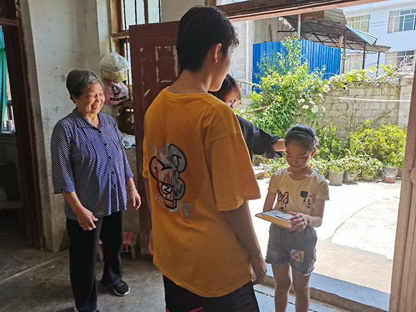 实践队员们了解到当地学生大部分是留守儿童,父母常年在外打工,家中只有年迈的爷爷奶奶。于是实践队员们翻山越岭,去到这些学生家中进行家访,与他们面对面促膝长谈,心连心切切交流。