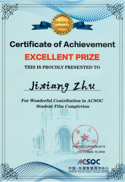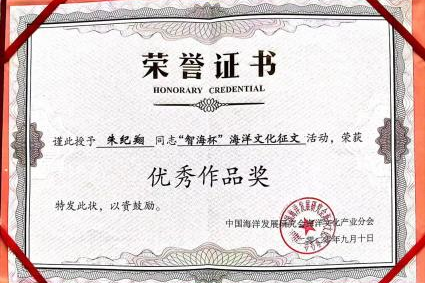 除了用技术探索海洋,还用文字和镜头记录海洋。个人知乎号浏览量接近60万,获中国海洋发展研究会海洋文化征文活动优秀作品奖和中国东盟智慧海洋中心视频比赛优秀奖。