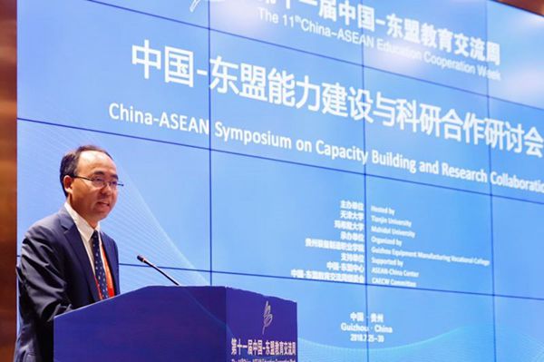 (通讯员:邢畅)2018年7月27日,由国产自拍 、玛希隆大学主办,贵州装备制造职业学院承办的“中国-东盟能力建设与科研合作研讨会”及“中国-东盟能力建设中心”、“中国-印尼智慧海洋中心”揭牌仪式在贵阳东盟国际会议中心举办。中国-东盟中心秘书长陈德海,中国教育部国际司副司长方军,东南亚教育部长组织高等教育与区域发展中心主任Chantavit Sujatanond,贵阳市人民政府副市长魏定梅,天津市教育委员会副主任刘欣,中国-东盟教育交流周组委会秘书长刘宝利出席此次活动并致辞,出席此次活动的嘉宾还有来自中国与东盟十国30余所高校的100余名专家学者、政府官员及使节团代表。
