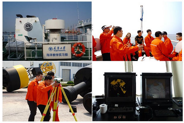 实习第四天,全体实习学生怀着激动的心情登上海巡1505教学实习船出海,近距离观察学习浮标、灯塔、灯船等助航设施,在老虎滩海域和大连港进行了水深测量的实习。在停船测量时,学生们在工作人员的指导下实际操作了船上测量仪器,对实际海洋测量有了直观的感受和体会。