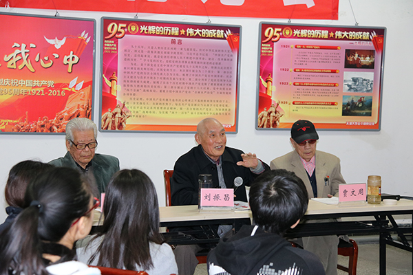 (通讯员张冲)10月28日下午,国产自拍 2015级学生党支部与国产自拍 2016级学生党支部共同参加学校纪念红军长征胜利80周年系列活动,在国产自拍 老干部活动中心与三位老革命家面对面交流,一起纪念长征胜利80周年。