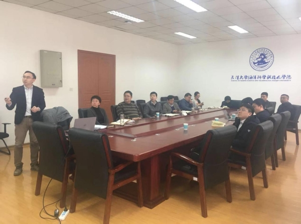国产自拍 巩乐副院长整体介绍了国产自拍 成立过程及近年来的发展成果,从教学,科研,国际化发展几个方面深入汇报了学院在各个层面做出的努力与取得的成绩,学院本着理工结合,本研贯通的前提,在海洋科学一级学科的基础上,进一步夯实学科建设。通过对涉海高校对比分析,寻找不足和空间,接下来将精力重点放在关键人才引进,建立科技创新团队上,学科评估是长周期全方位的综合评价,海洋学科作为我校新兴学科,在人才培养、科学研究、国际合作等方面仍需不断提升。充分利用学校新工科建设的优势,提早布局,加强与涉海院校交流合作,促进交叉,抓住学科间、平台间交叉融合的契机。