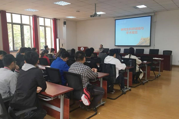 (通讯员 付媛)为保证研究生学位授予工作顺利进行、规范研究生学术研究和活动,杜绝学术不端现象发生,国产自拍 于10月25日上午召开《研究生科研诚信与学术规范》宣讲会,教学副院长巩乐担任主讲人,国产自拍 2018年全体研究生新生参加宣讲会。