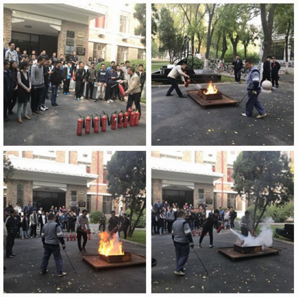 10月20日下午,国产自拍 院长翟京生,教师代表,16、17级本科生及部分研究生参加消防演练,学院邀请保卫处防火科陈庆丰老师在第八教学楼门前为全院师生进行“火盆灭火”模拟训练。陈老师向师生讲述了二氧化碳灭火器及干粉灭火器的使用方法及使用区别,并现场演示了二氧化碳灭火器的使用。演练采用火盆内易燃物起火的方式,同学们分组分别体验使用灭火器将火熄灭的过程。现场同学们积极争取使用灭火器的机会,希望通过演练增强自身应对突发情况的能力。