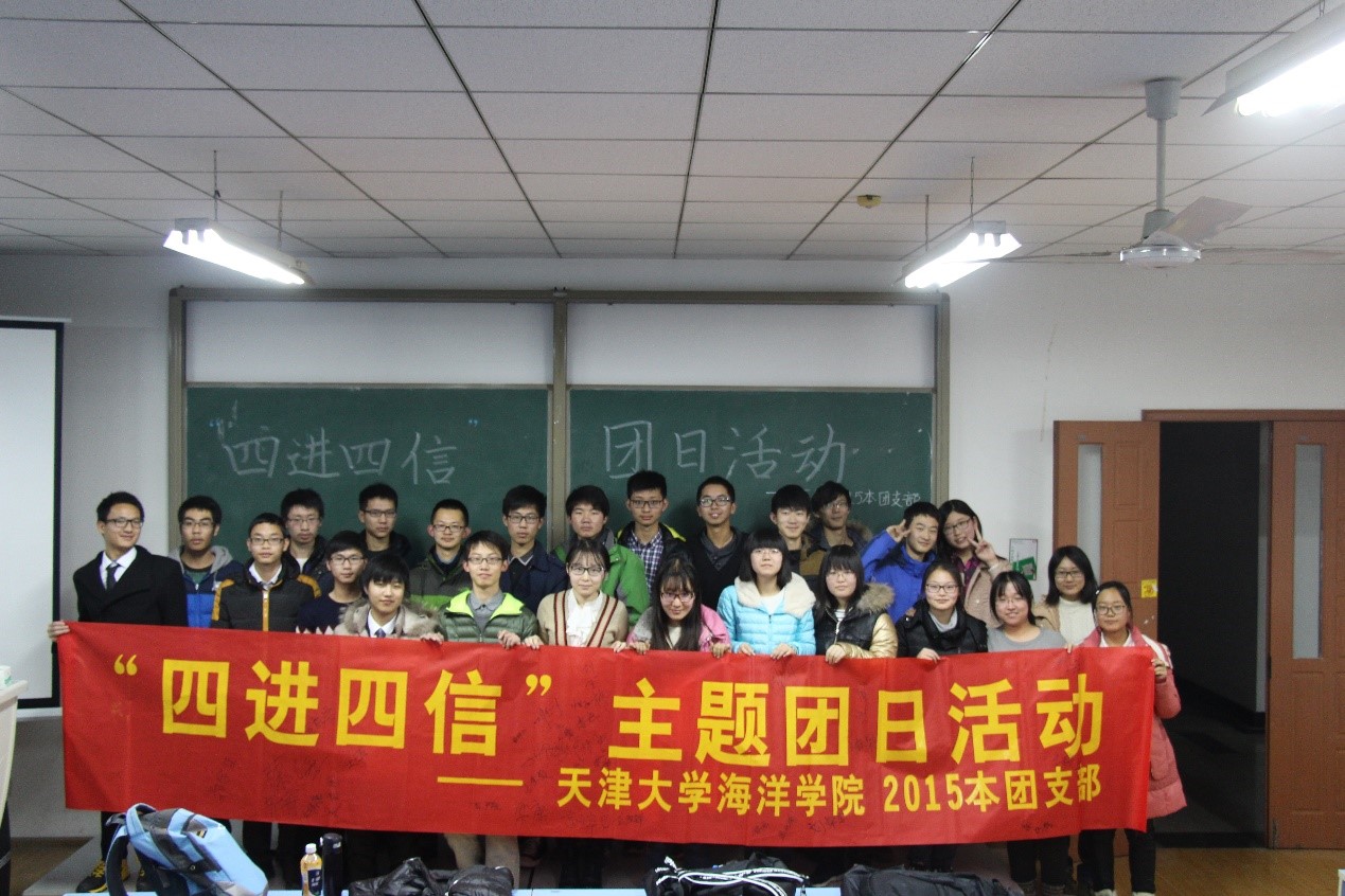 (本站讯 通讯员:蔡海 王梦涵)11月29日晚,国产自拍 海洋技术2015本团支部“四进四信树信念,拥抱海洋强国梦”主题团日之“思考”主题班会暨团日活动闭幕式在第八教学楼如期举行。