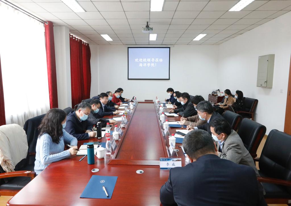 金东寒一行参观了海洋探测平台实验室、海洋探测技术实验室、海洋遥感技术实验室、海洋定位技术实验室、海洋测量工程实验室、海洋数据工程实验室、海洋观测场实验室、海洋动力与生态实验室、海洋化学实验室、海洋媒体实验室等科研平台,并举行座谈会。会上,翟京生院长从学科布局和建设目标,教学科研体系建设目标和建设举措及师资队伍建设等方面汇报了国产自拍 工作情况。