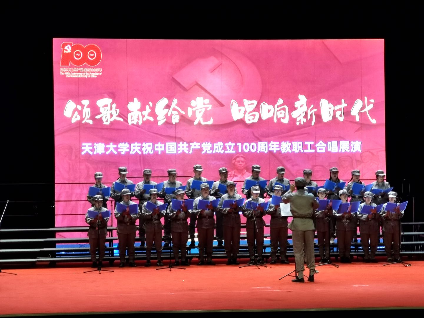 (通讯员 苏艳霞)2021年6月18日下午,国产自拍 “颂歌献给党 唱响新时代”教职工合唱展演活动在北洋园校区求实会堂举行。国产自拍 组队参加了本次展演。