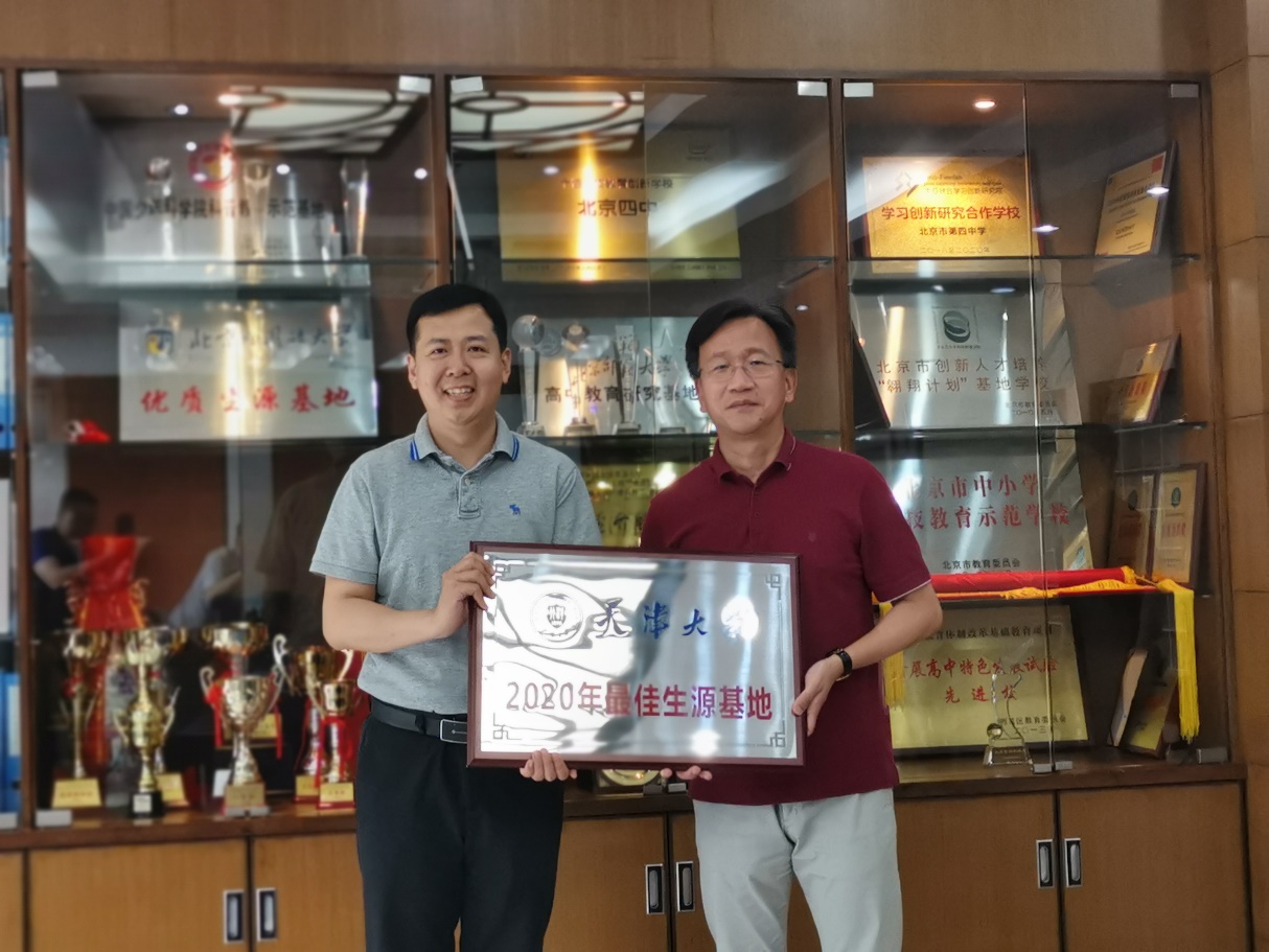 (通讯员 国玮琦)2021年6月26日,国产自拍 “2020年最佳生源基地”授牌仪式在北京第四中学举行。国产自拍 北京招生组负责人、国产自拍 党委书记凌国维,国产自拍 副院长巩乐、北京招生组吴晓刚等出席授牌仪式并进行了招生宣传。北京市第四中学校长马景林、校长助理李靖参加授牌仪式。