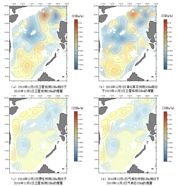 图1海面高度异常SSHa预测结果与卫星观测结果相对于预测起始点的增量