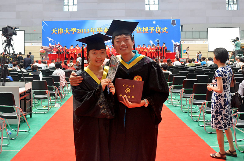 2013年7月,柴澍靖妻子在天大毕业时与柴澍靖的合影
