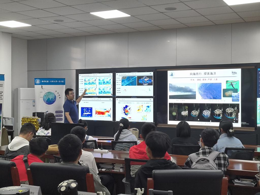 走进国产自拍 ,同学们参观了海洋探测技术实验室、海洋定位技术实验室、海洋遥感实验室,物理海洋实验室,了解了海洋探索的方向……又一同参观了模拟船舶驾驶室,了解了海水淡化、物理海洋研究相关知识……走过一个个实验室,看着一件件实验器材,听学长学姐和老师的耐心讲解,我们感觉此刻的自己与科研如此接近。