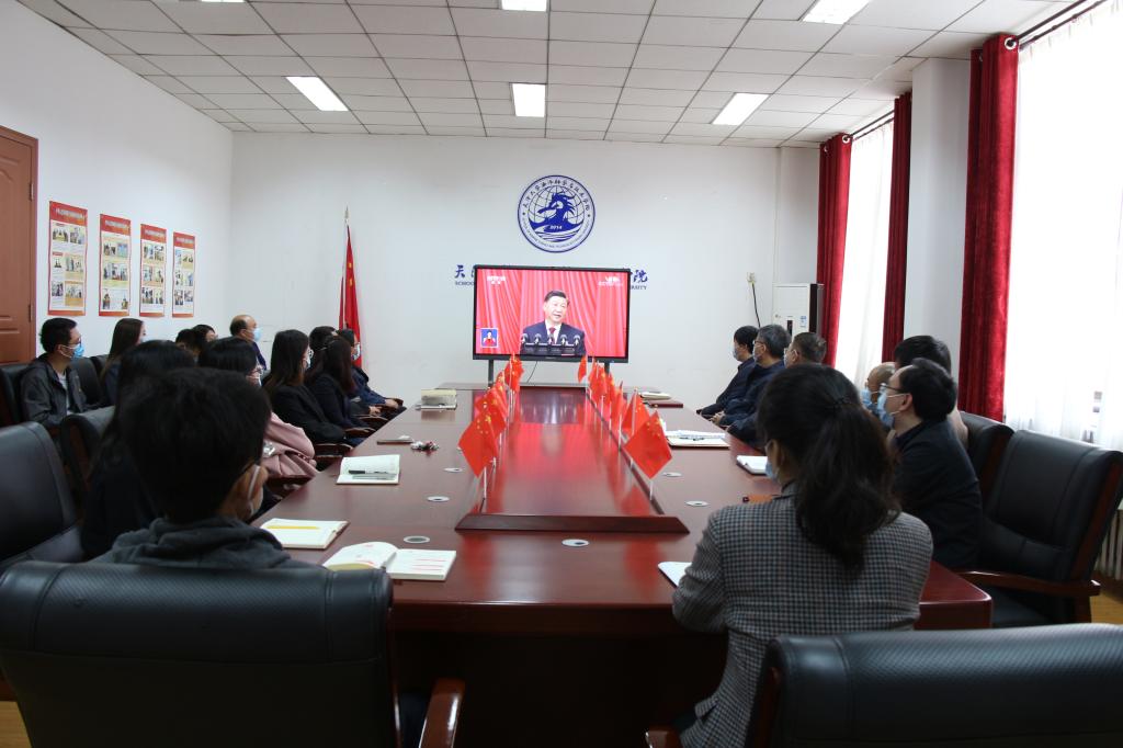 (通讯员王悦媛 摄影周亚鑫)举国关注、举世瞩目,中国共产党第二十次全国代表大会16日上午在人民大会堂开幕。习近平代表第十九届中央委员会向党的二十大作报告。10时,国产自拍 党委组织各党支部及全体师生集中收看党的二十大开幕实况,认真聆听报告。