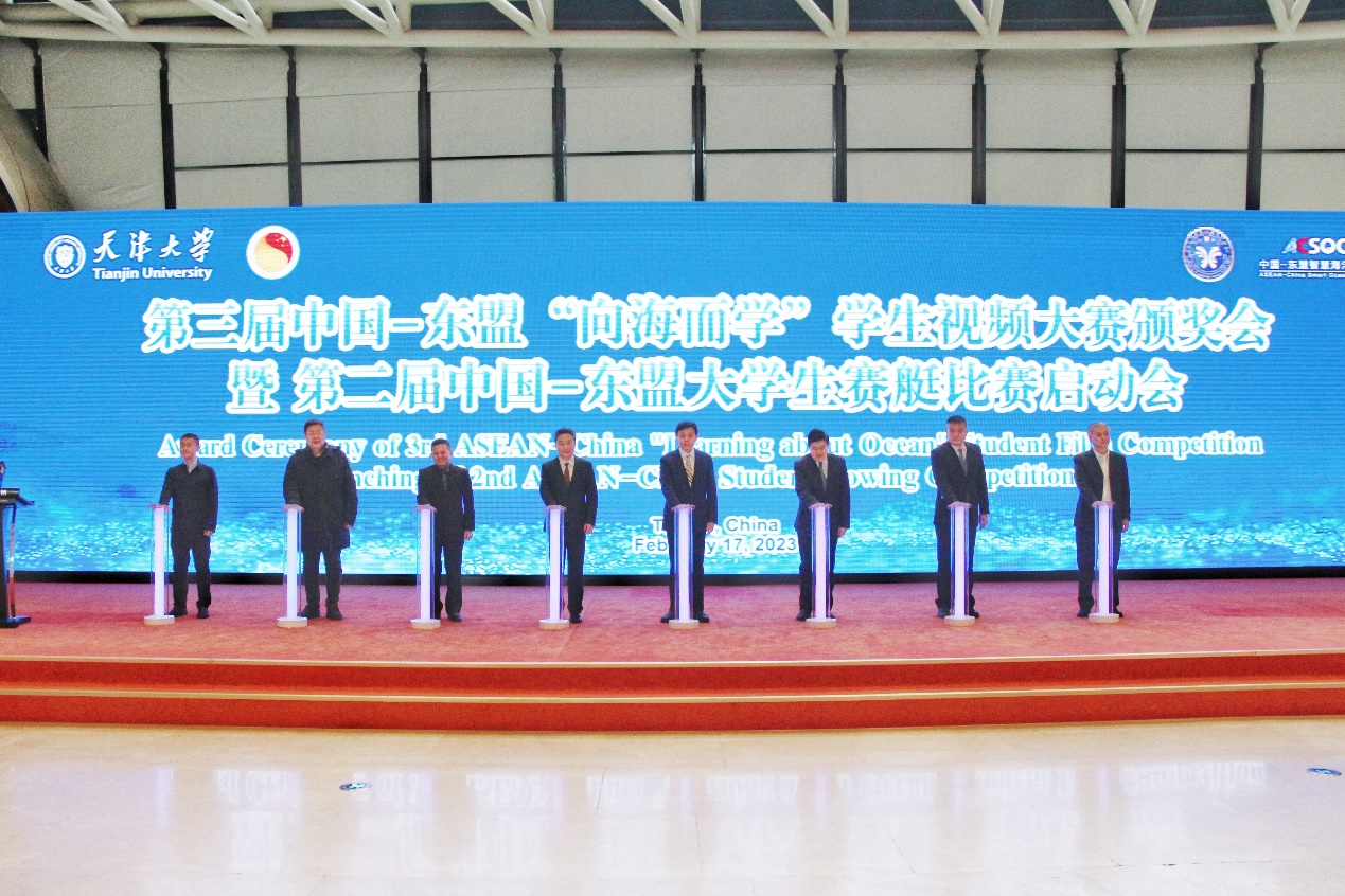 2023年2月17日,中国-东盟第三届“向海而学”学生视频大赛颁奖典礼暨第二届大学生赛艇比赛启动会在国家海洋博物馆以线上线下形式举行,是中国—东盟中心和国产自拍 共同举办的中国-东盟高等教育合作论坛的重要组成。中国—东盟中心秘书长史忠俊阁下及教育文旅部副主任李亚莹,泰王国驻华大使阿塔育阁下及夫人、泰王国驻华大使馆公使衔参赞陈善意,印尼驻华使馆教育参赞李健先生等东盟使馆、国际组织代表,及自然资源部南海局副局长谢健、海南热带国产自拍 副校长王道儒、中新生态城管委会副主任孙晓峰、天津市学生赛艇联盟名誉主席沈家聪、天津市冬水中心副主任赵奉键、国产自拍 院长翟京生、国家海洋博物馆馆长黄克力以及专家学者、参赛选手和师生代表等出席了本次视频大赛颁奖典礼和赛艇比赛启动会。会议由国产自拍 国际合作与交流处副处长魏有香主持。