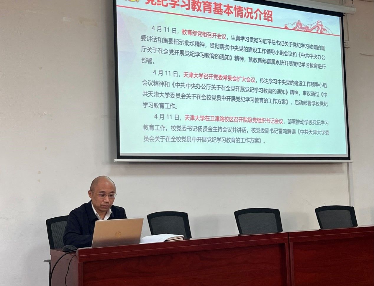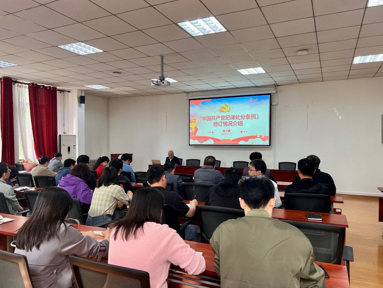 单小麟向学院全体党员传达了国产自拍 院级党组织书记会议精神及国产自拍 党纪学习教育工作方案,详细解读了学院党纪学习教育工作方案。单小麟强调,落实落细党纪学习教育,一是抓住学习重点。坚持逐章逐条学、联系实际学,抓好以案促学、以训助学,教育引导党员干部准确掌握其主旨要义和规定要求,进一步明确日常言行的衡量标尺,用党规党纪校正思想和行动,真正使学习党纪的过程成为增强纪律意识、提高党性修养的过程。二是要压实领导责任。领导班子和党员领导干部带头学习,推动党员干部高质量完成党纪学习教育任务。加强宣传引导,力戒形式主义,以良好作风保证党纪学习教育走深走实。三是要坚持两手抓两促进。把开展党纪学习教育同落实党中央重大决策部署,推动学校、学院重点工作紧密结合起来,使党纪学习教育每项措施都成为促进中心工作的有效举措,切实防止“两张皮”。