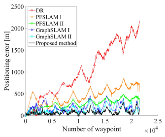 为了保证图优化SLAM位置估计和地形图构建的准确性,屏蔽粗差影响,构建了基于Frechet距离的鲁棒后端优化器,在优化解析过程中自动辨识和排除错误的数据关联因子,实现稳健的导航状态估计和高一致性的地形图构建。研究结果表明,基于低成本的导航系统,利用本方法,在近20km的完全水下导航路径下,可以实现小于100米的定位误差。在海洋自主航行器技术快速进步及其应用场景不断丰富的背景下,本研究在水下环境勘察、目标搜寻等多场景应用中均具有重要潜力。