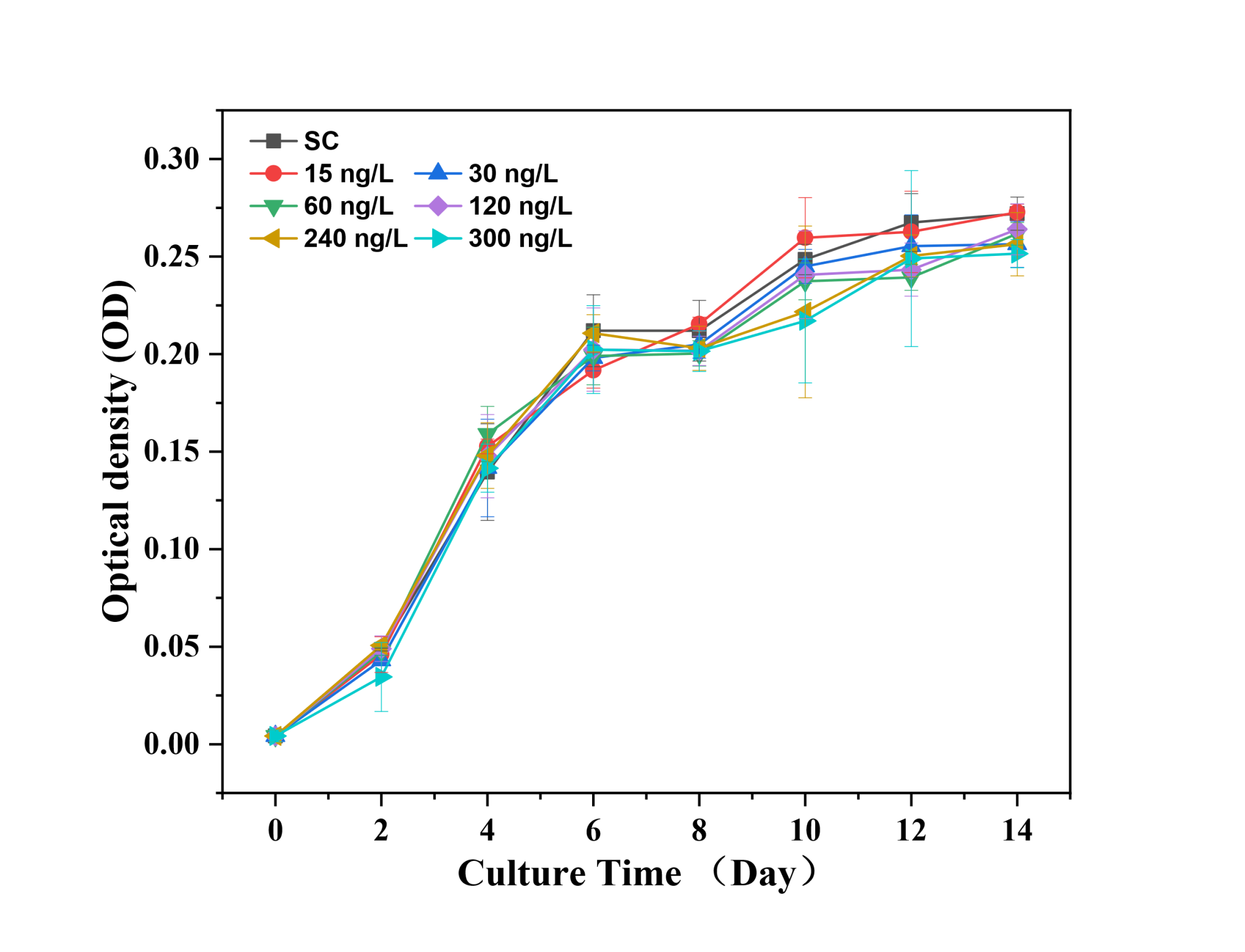 1.新兴PFASs混合物暴露下海洋中肋骨条藻生长变化曲线图。