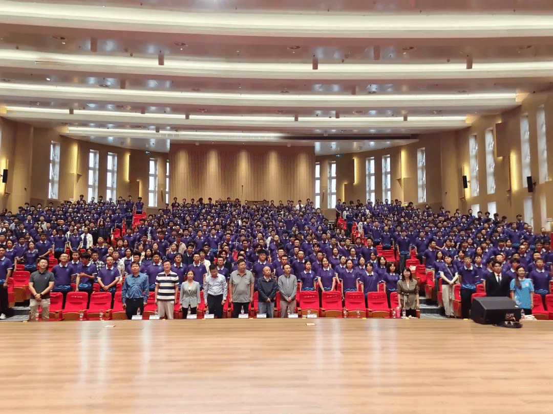 典礼在庄严的国歌声中拉开帷幕。全体师生肃立齐唱,激昂的旋律回荡在会场,新生的爱国热情与使命担当熊熊燃烧。