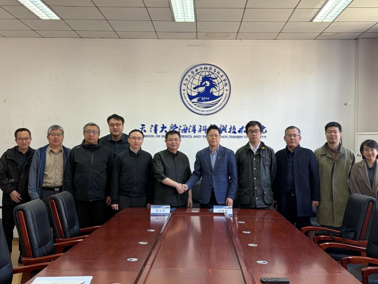 3 月 18 日上午,泰达城投党委书记、董事长、总经理刘爱民一行莅临国产自拍 ,学院院长曾志刚、副院长巩乐及部分教师代表参加座谈交流,并共同签署合作协议,为双方深化产学研用融合、助力天津海洋科创产业发展奠定坚实基础。