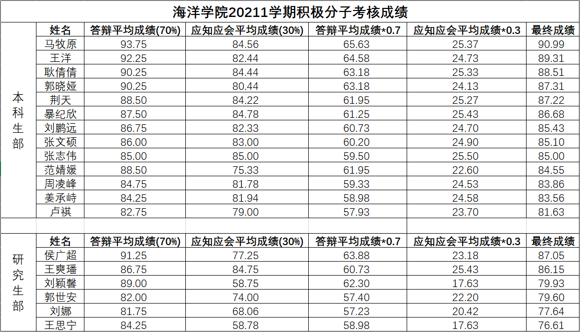 3. 积极分子考核最终成绩比重为答辩平均成绩70%,应知应会理论考试平均成绩30%。