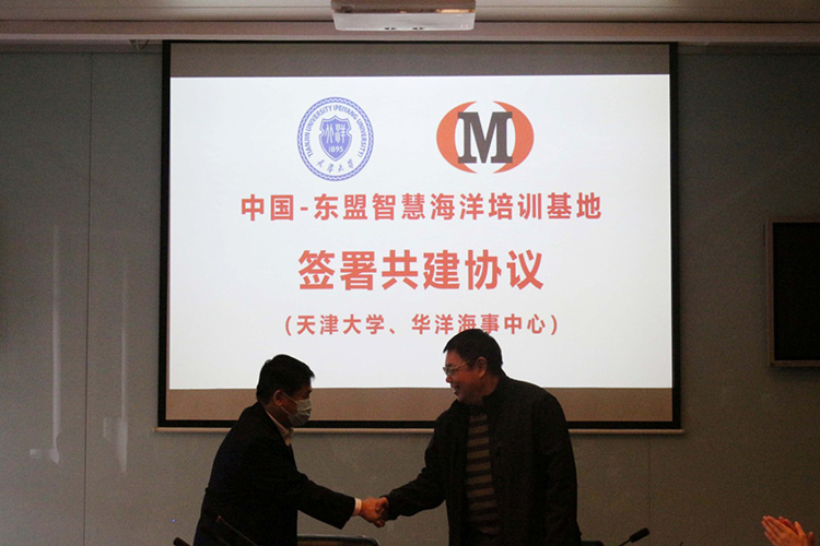 During the meeting, a cooperation agreement on the construction of ASEAN-China Smart Ocean Practice Program Training Base was signed between Tianjin University and Huayang Maritime Center to deepen cooperation between the two sides in the field of Smart Ocean high-end training and seafarer training.