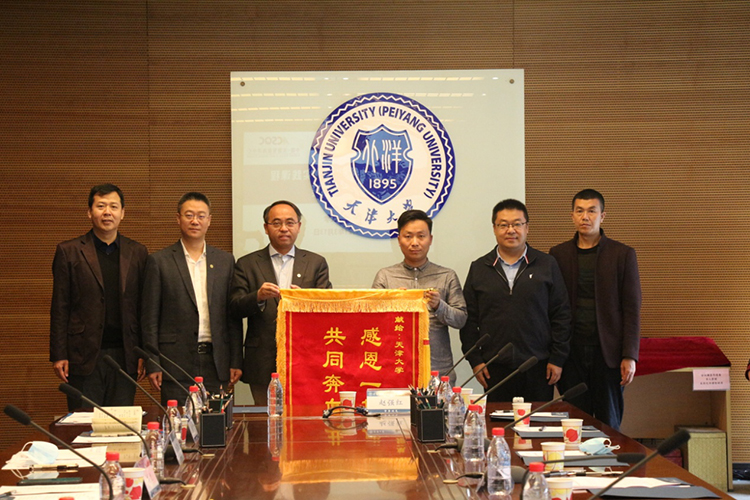 Du Fuqiang, on behalf of the trainees from Tanchang County, presents a pennant to Tianjin University